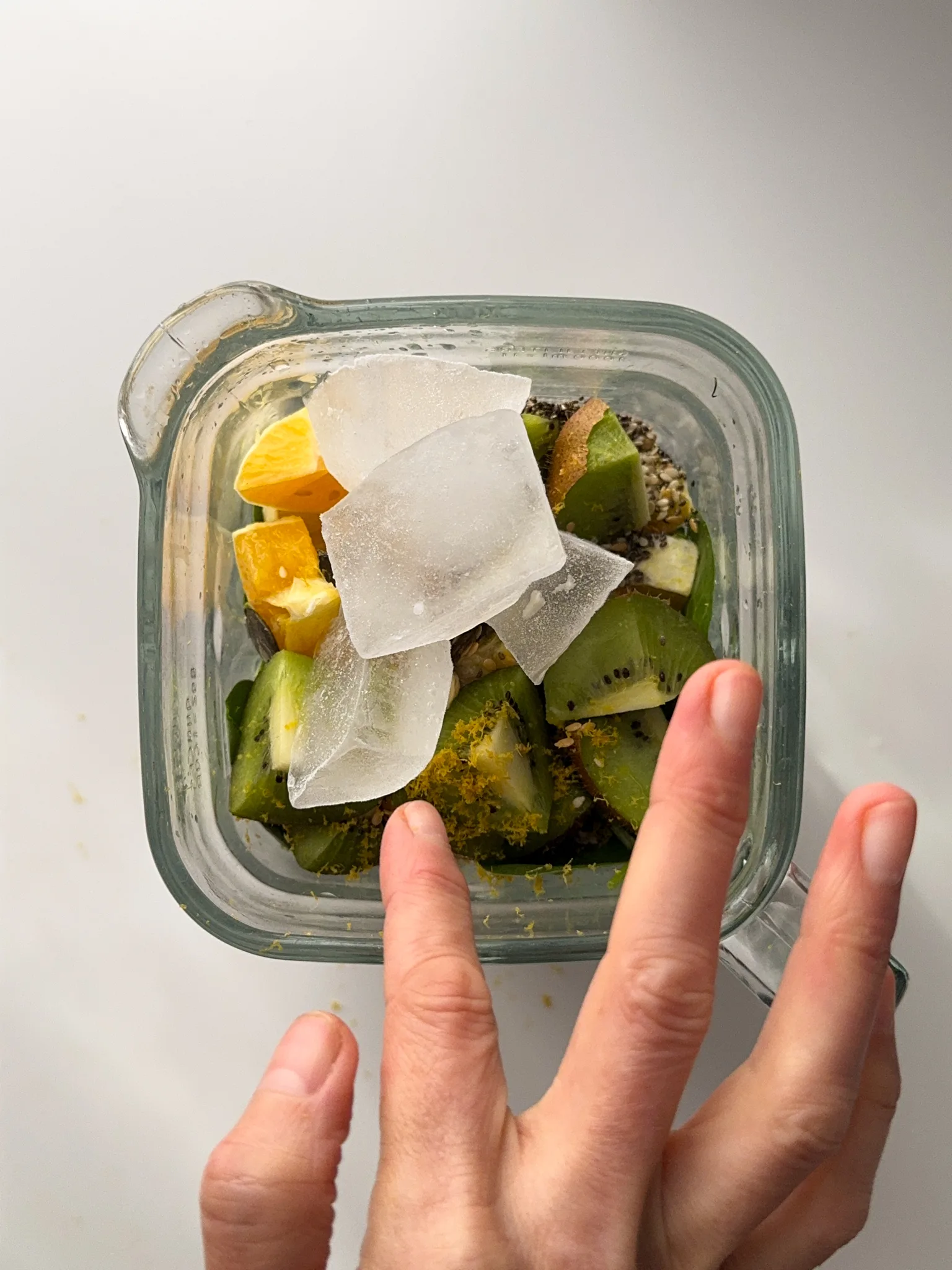 - Add the FruitsPeel the orange, cut it into smaller chunks, and add it to the blender. For the kiwi, trim off the hard ends, chop it into small pieces, and add it to the jar with the skin on for extra fibre and nutrients.