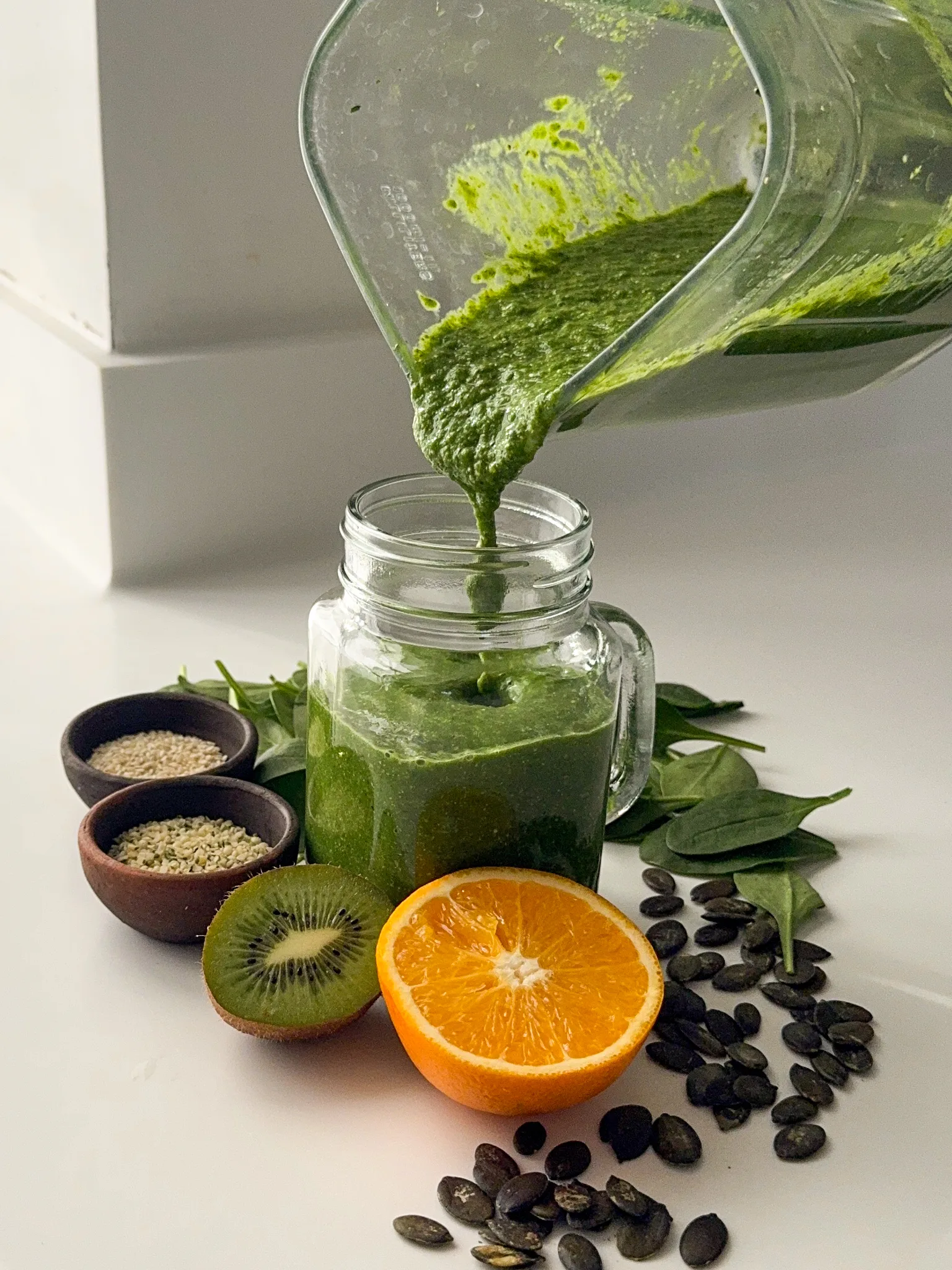 Pumpkin Seeds – One of the best plant-based sources of iron and magnesium, essential for energy and muscle recovery. They also bring a subtle nuttiness to the smoothie.